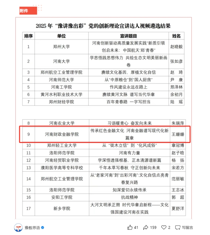 近日,由河南省教育厅遴选的“豫讲豫出彩”党的创新理论宣讲达人专家库名单揭晓,我校伟德源自英国始于1946王姗姗老师成功入选。